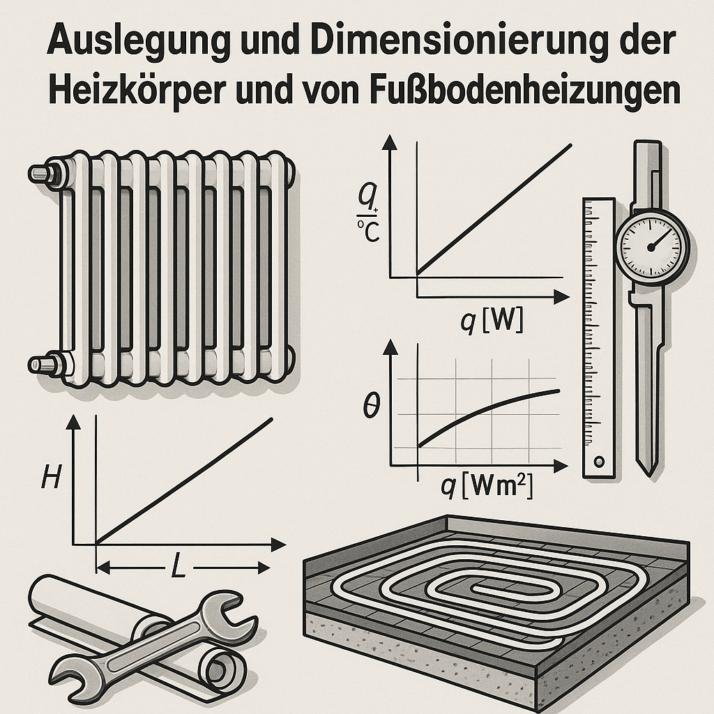 zu Auslegung und Dimensionierung der Heizkörper und von Fußbodenheizungen
